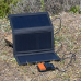 The compact design makes handling and transport very easy. Unfold and align the panel as perpendicularly as possible to the sun. Equipped with carabiner and loops for attachment to e.g. backpack, tent or other fastening points. The flat design made of durable oxford nylon fabric is extremely robust, dust- and water-repellent. The inside pocket also allows you to store flat and small items.