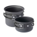 The Trekking pot sets made of hard anodised aluminium are the ideal lightweight companions for every trekking tour. The smaller version is designed for 1 - 2 persons, the larger version for 3 - 4 persons. The sturdy folding handles provide a secure hold at any filling level. The transport takes place in a practical net bag.